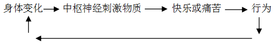 随着生物的进化,生物体中出现了多巴胺和内菲肽之类的中枢神经刺激物质,这些物质可以使中枢神经系统产生兴奋和抑制等情感,情感会导致行为: